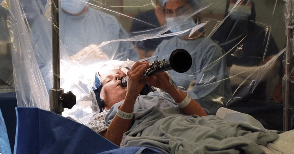 Британские нейрохирурги попросили пациентку поиграть на кларнете во время установки в мозг электродов для лечения болезни Паркинсона. 65-летней жительнице Кроуборо в Восточном Суссексе Дениз Бэкон, до пенсии работавшей логопедом, поставили диагноз в 2014 году. Несмотря на лекарственную терапию она страдала прогрессирующими брадикинезией и мышечной ригидностью, которые нарушали способность ходить, плавать и играть на кларнете. Пациентка поступила в Больницу Лондонского королевского колледжа, чтобы ей установили электроды для глубокой стимуляции мозга по направляющим через небольшие отверстия в черепе. Бригада нейрохирургов под руководством Кеюмарса Ашкана (Keyoumars Ashkan) попросила ее во время операции под местной анестезией играть на любимом инструменте, чтобы точно локализовать оптимальное расположение электродов.