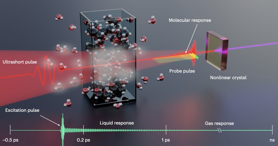 Группа физиков под руководством Хание Фаттахи (Hanieh Fattahi) из Института физики света Общества Макса Планка использовала мощные фемтосекундные лазерные импульсы для возбуждения молекул и электрооптическую выборку для измерения откликов. Ультракороткие импульсы генерировали в два этапа. Сначала физики при помощи лазера генерировали импульсы с энергией около 20 микроджоулей и частотой около мегагерца и сжимали их с 255 до 25 фемтосекунд при помощи спектрального расширения на основе фазовой модуляции в заполненных аргоном однокольцевых фотонных кристаллических волокнах. Затем ученые дополнительно сжимали импульсы в аналогичном волокне за счет эффекта самокомпрессии. Такая схема помогла генерировать яркие синхронизированные импульсы, обеспечивая высокую чувствительность и минимизацию шумов.