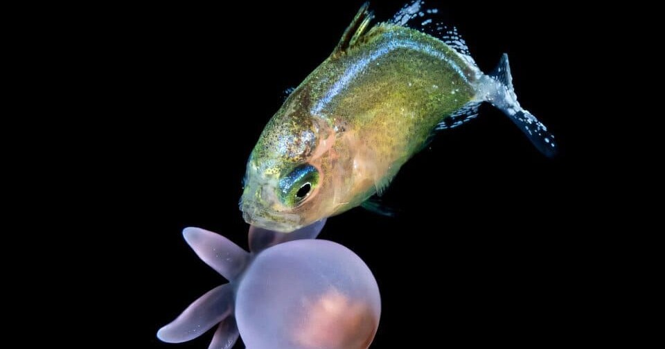 Команда ихтиологов под руководством Габриэля Афонсо (Gabriel V.F. Afonso) из Виргинского института морских исследований описала еще один пример близких взаимоотношений рыб и пелагических стрекающих. В центре внимания исследователей оказались фотографии, сделанные дайверами — в том числе одним из авторов работы — во время ночных погружений в открытом море (blackwater diving) в окрестностях Таити в 2014 году и у берегов Флориды в 2018-2023 годах. На них были запечатлены личинки и молодь рыб, которые находились в компании планктонных личинок стрекающих из класса шестилучевых кораллов (Hexacorallia).