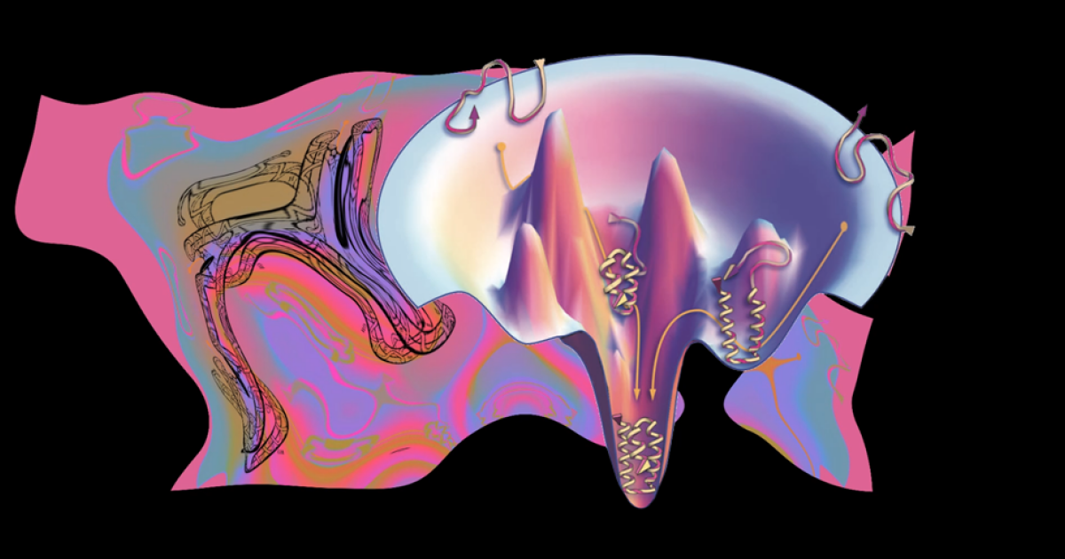 Как и в любой оптимизационной задаче, найти лучший путь к энергетическому минимуму довольно сложно. Поверхность этой воронки испещрена локальными повышениями и понижениями свободной энергии: холмами и впадинами, которые белку приходится преодолевать или обходить стороной. Например, можно натолкнуться на такой вариант свернутого клубка, который на первый взгляд кажется устойчивым, а на самом деле оказывается лишь лучшим вариантом из худших — локальным минимумом для в целом неустойчивой структуры.