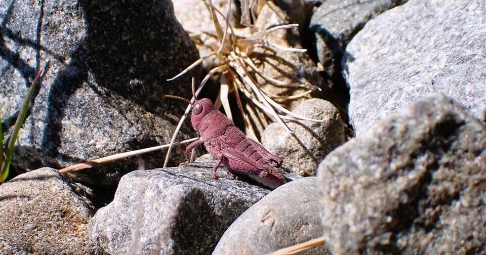 Министерство охраны окружающей среды Новой Зеландии сообщило о находке очень необычного насекомого. Сотрудники ведомства проводили ежегодный учет численности нелетающих кобылок Sigaus robustus, редких представителей отряда прямокрылых (Orthoptera), которые обитают только на речных берегах в бассейне Маккензи — межгорной местности в центре новозеландского Южного острова. У озера Текапо специалисты заметили самку этого вида, которая окрашена в темно-розовый цвет. Она сидела на камне и грелась на солнце. Обычно кобылки S. robustus серые, ржаво-коричневые или — крайне редко — черные. Такая окраска позволяет насекомым визуально сливаться с камнями и валунами, среди которых они живут, делая их незаметными для хищников. Судя по всему, расцветка розовой самки объясняется чрезмерной выработкой красного пигмента. Это нарушение окраски известно как эритризм. У прямокрылых оно встречается довольно часто, например, у разных видов