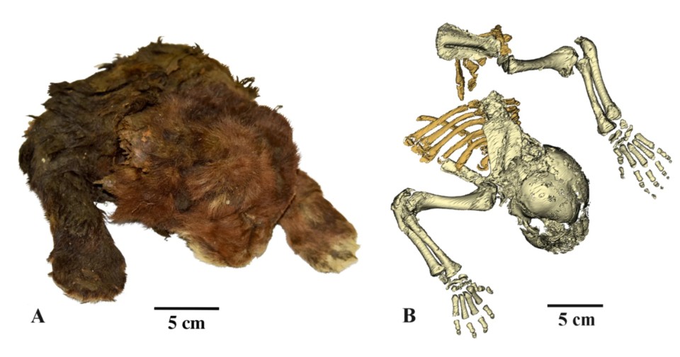 Алексей Лопатин (Alexey Lopatin) из Палеонтологического института РАН совместно с коллегами из Екатеринбурга, Москвы, Новосибирска и Якутска сообщил о необычной находке. В 2020 году в Абыйском улусе Якутии обнаружили в мерзлоте мумифицированную часть туши детеныша крупного хищника, а также часть скелетированных останков этого животного. Чтобы определить возраст находки, ученые отправили образцы шерсти на радиоуглеродный анализ. Он показал, что детеныш умер около 37–35,5 тысячи лет назад.