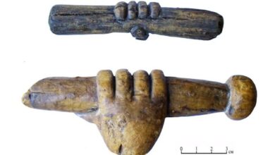 На этот раз Артём Недолужко (Artem Nedoluzhko) из Европейского университета в Санкт-Петербурге, Светлана Панкова (Svetlana Pankova) из Государственного Эрмитажа и их коллеги сосредоточили свое внимание на находках, раскопанных в 2023 году в одном из захоронений Оглахтинского могильника. Тогда внутри сруба археологи обнаружили деревянную посуду, модели оружия и прочие вещи, а также останки двух человек: женский скелет с раскрашенной гипсовой маской на лице и погребальную куклу, поврежденную грызунами. Дендрохронологический анализ показал, что исследованное захоронение относится ко второй четверти II — III веку нашей эры, а радиоуглеродное датирование травы из набивки погребальной куклы указало на III — первую половину V века.