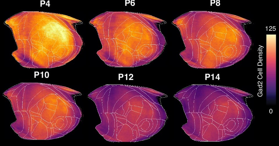 Ключевыми факторами раннего развития мозга оказались регионспецифичные изменения плотности ГАМКергических нейронов, специфичных для отдельных слоев коры клеток и микроглии. В процессе развития плотность ГАМКергических нейронов возрастала то в коре, то в полосатом теле, стабилизируясь к 12 дню после рождения. Также значительной динамикой обладала плотность корковых вставочных нейронов, экспрессирующих соматостатин и кишечный вазоактивный пептид. Высокая плотность микроглии смещалась из белого вещества в серое на 10 день, селективно повышаясь в областях обработки сенсорной информации.